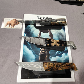 Lames à Langres! That means "Blades in Langres." Every year in April, there is a knife show in Langres with knifemakers from France, Belgium, and sometimes other countries. This year, women knifemakers were well represented. Again, many new faces and some usuals. Is it a big show? No, it's a small show with approximately 55 exhibitors, but with a lot of choice: folding knives, fixed blades, leather pouches, hunting knives, kitchen knives, and historical replicas. Each maker has his/her own style. We took some photo's and made some small videos to show you what was going on.